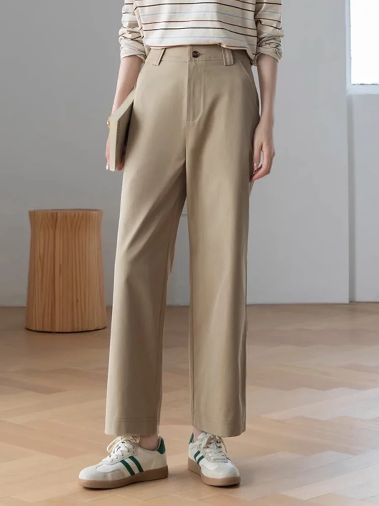 小さめストレートパンツ スモークチューブ 太めワイドパンツ レディース カジュアル ハイウエスト 細めストレートパンツ